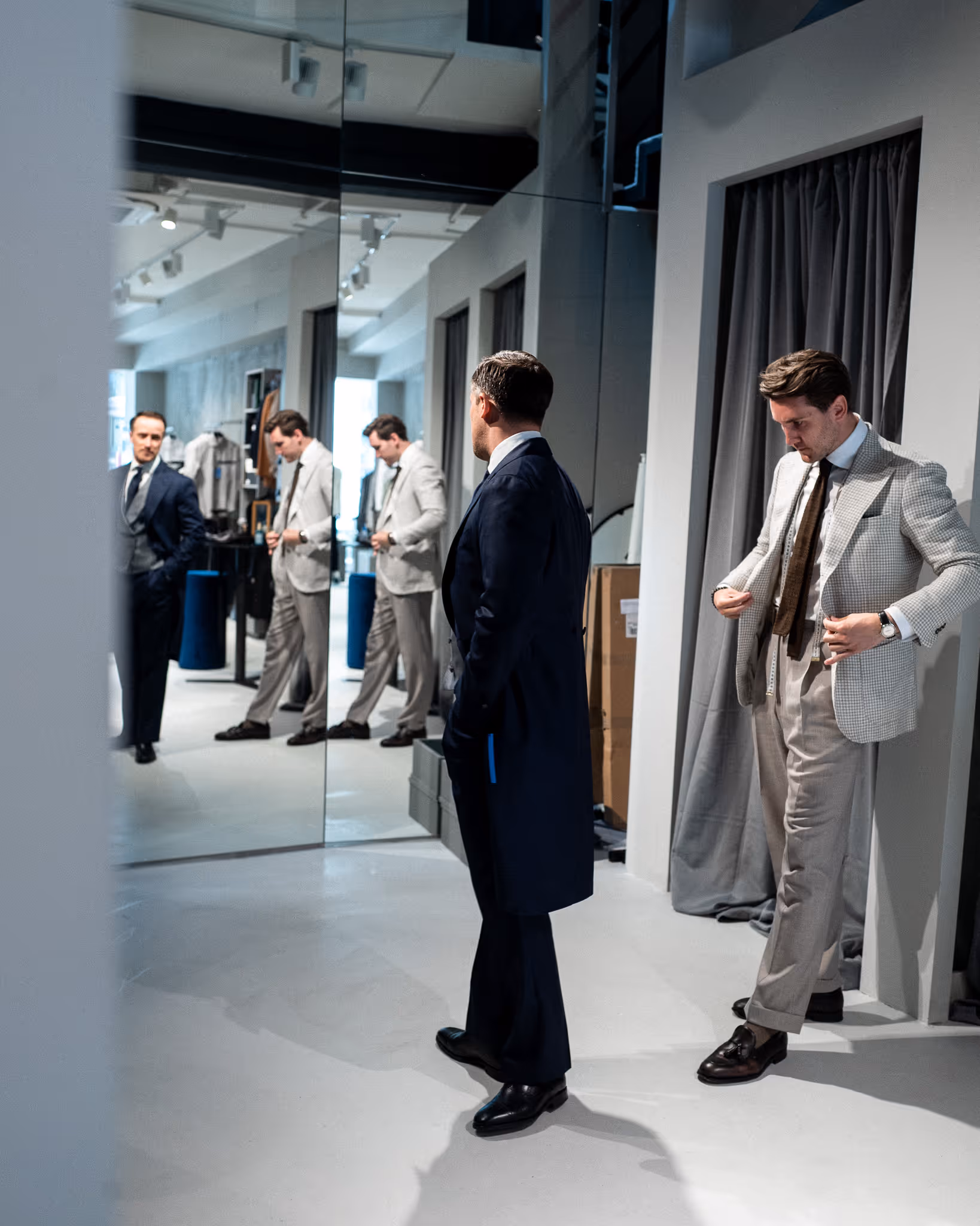 Egal, ob klassisch elegant, modern lässig oder irgendwo dazwischen – wir beraten dich so, dass der Anzug zu deinem Stil, deinem Tag und deinem Leben passt. Mit unserem Made-to-Measure-Service bekommst du die Anzüge unserer Kollektion auf deine Maße geschnitten. Für noch spezifischere Anforderungen bieten wir auch Custom-Made-Anzüge an, die deine einzigartigen Vorstellungen und Bedürfnisse erfüllen.